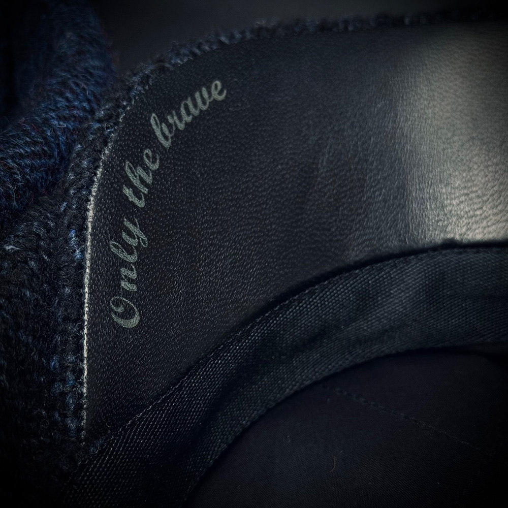 На козырьке выполнена гравировка: «Только смелым».