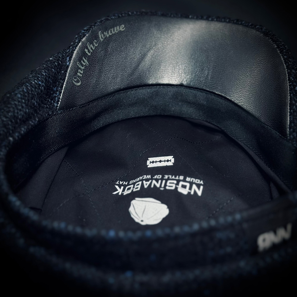 Нижний козырёк — из натуральной кожи чёрного цвета, сзади — кожаная полоска для фирменного значка.