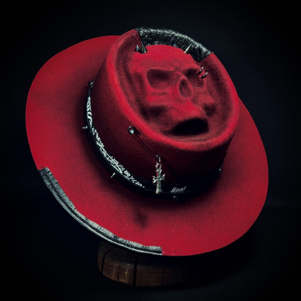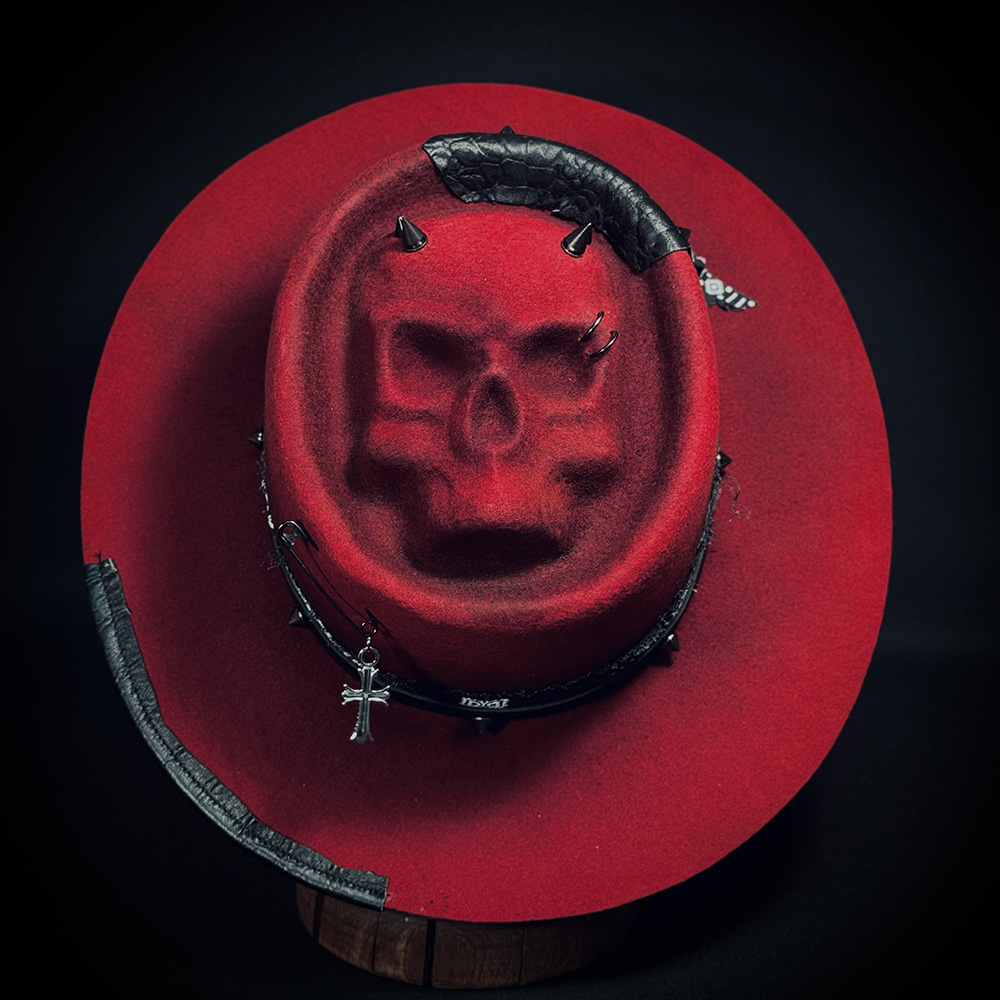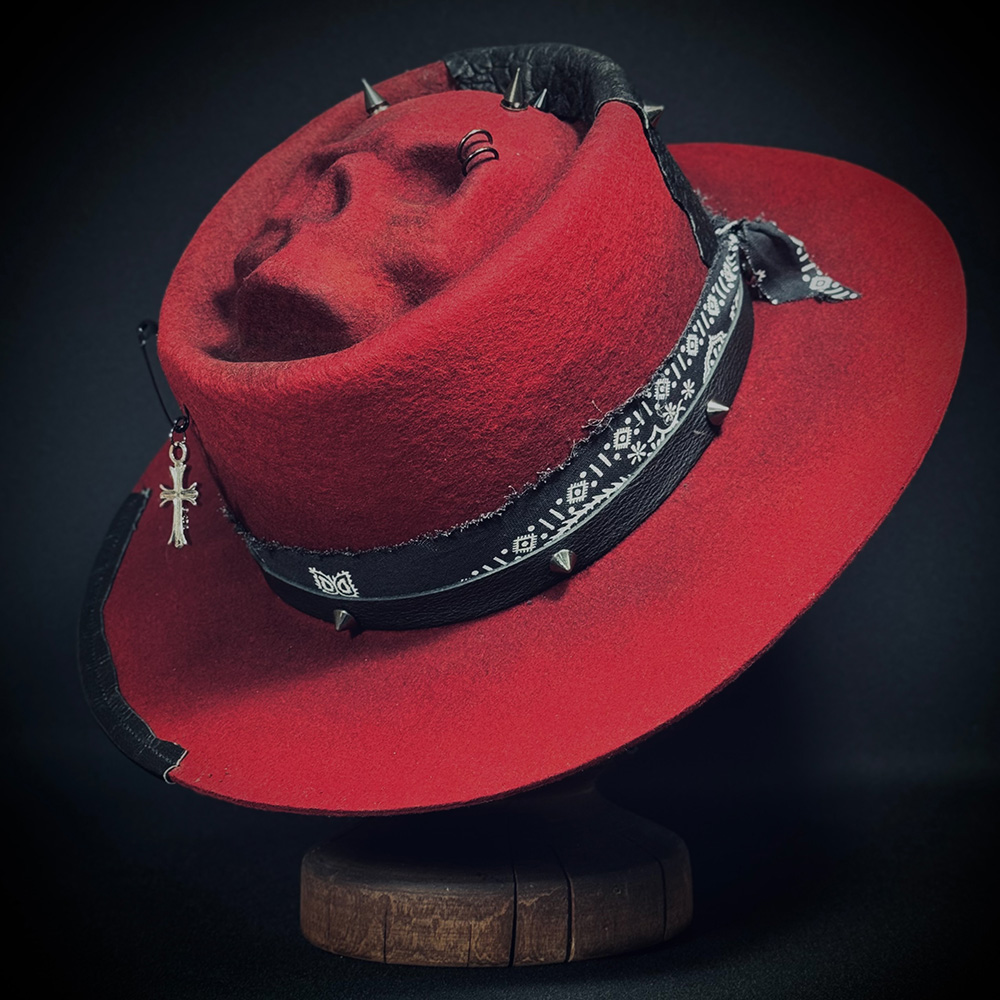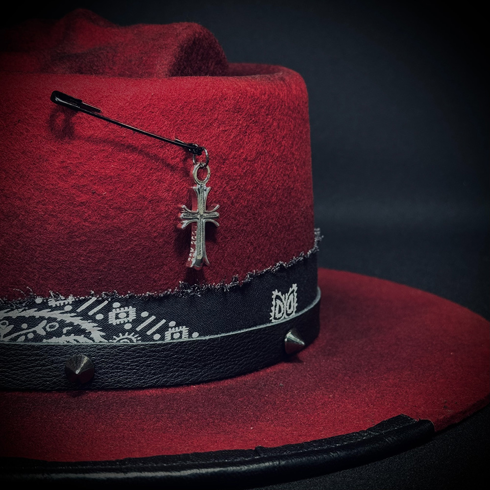 Отделка: кожаная лента с шипами, бандана, подвеска «крест», кожаная аппликация, металлические элементы